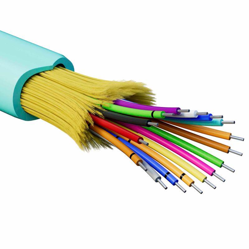 Кабель волоконно-оптический распределительный арамидные упрочняющие нити для внутренней прокладки нг(A)-HFLTx 12 ОВ категорияOM3 (G.651.1) плотный буфер 0.4кН барабан 2000м DKC RNDT3C12AQ03