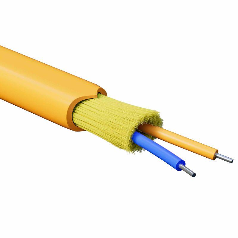 Кабель волоконно-оптический распределительный арамидные упрочняющие нити для внутренней прокладки нг(А)-HF 2 ОВ категория OM2(G.651.1) плотный буфер 0.4кН барабан 500м DKC RNDT2C2OR01-E