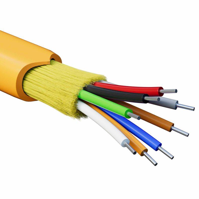 Кабель волоконно-оптический распределительный арамидные упрочняющие нити для внутренней прокладки нг(A)-HFLTx 6 ОВ категорияOM2 (G.651.1) плотный буфер 0.4кН барабан 2000м DKC RNDT2C6OR03