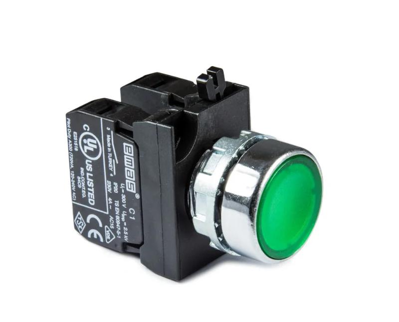 Кнопка с подсветкой-светодиод CM192DY (1НО+1НЗ) зел. EMAS CM192DY