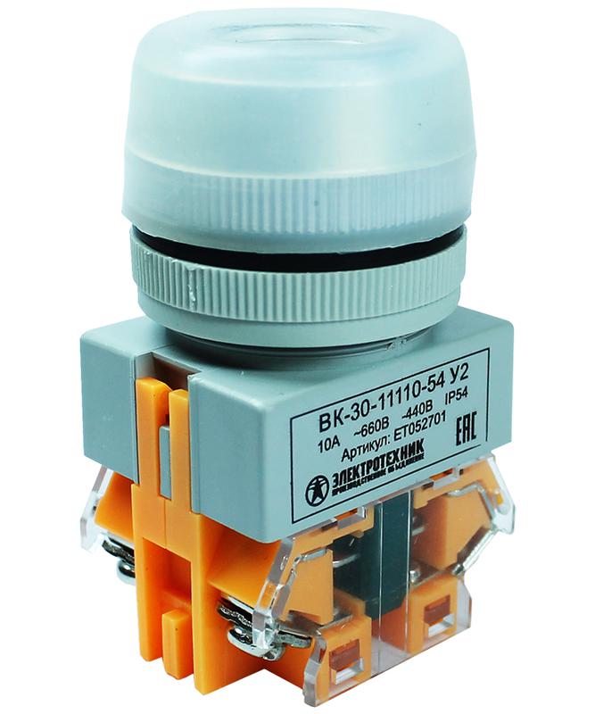 Выключатель кнопочный ВК30-10-11110-54 У2 1НО+1НЗ цилиндр 10А IP54 660В черн. Электротехник ET013274
