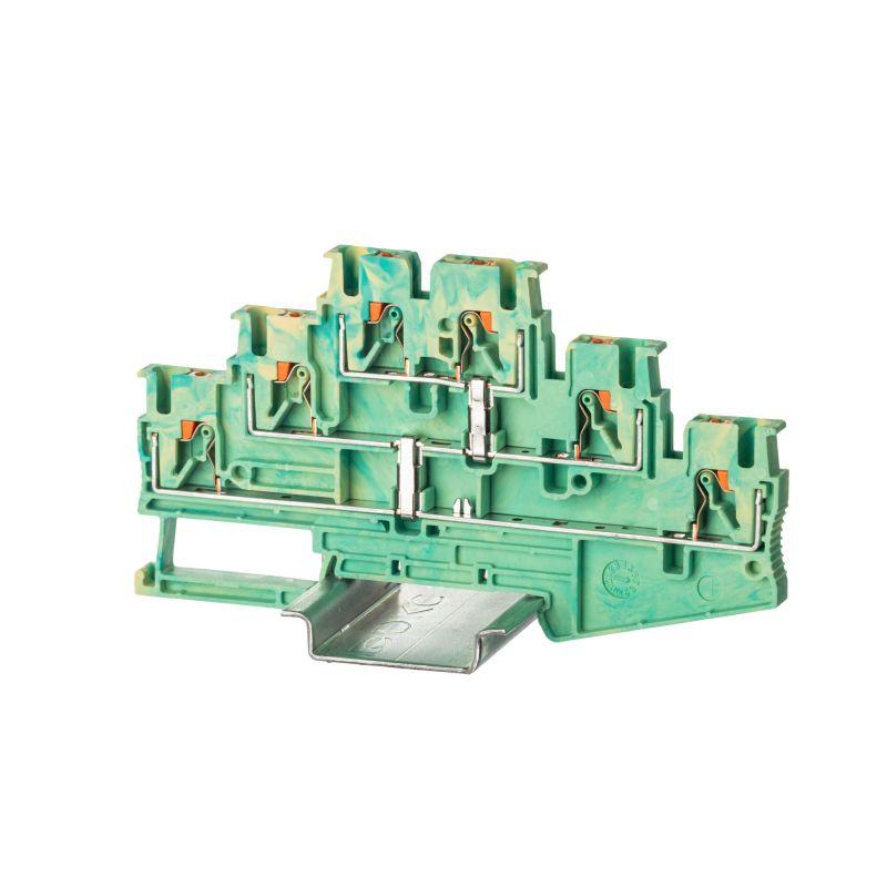 Клемма заземления двухуровневая зажим push-in 4 точки подключения 4кв.мм DKC VPRTT-4-PE-YG