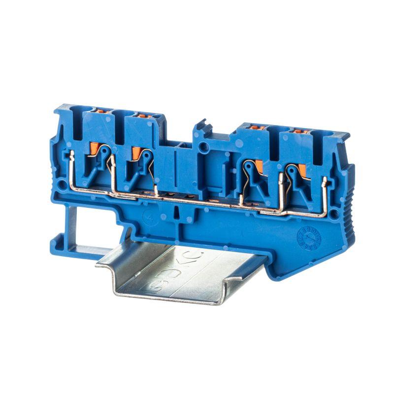 Клемма проходная зажим push-in 4 точки подключения 2.5кв.мм син. DKC VPR-2.5-QUATTRO-BU