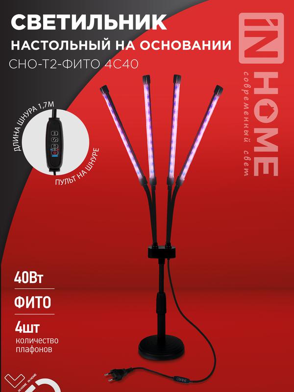 Светильник светодиодный настольный СНО-Т2-ФИТО 4С40 40Вт 4 плафона на основании пульт на шнуре черн. IN HOME 4690612053561