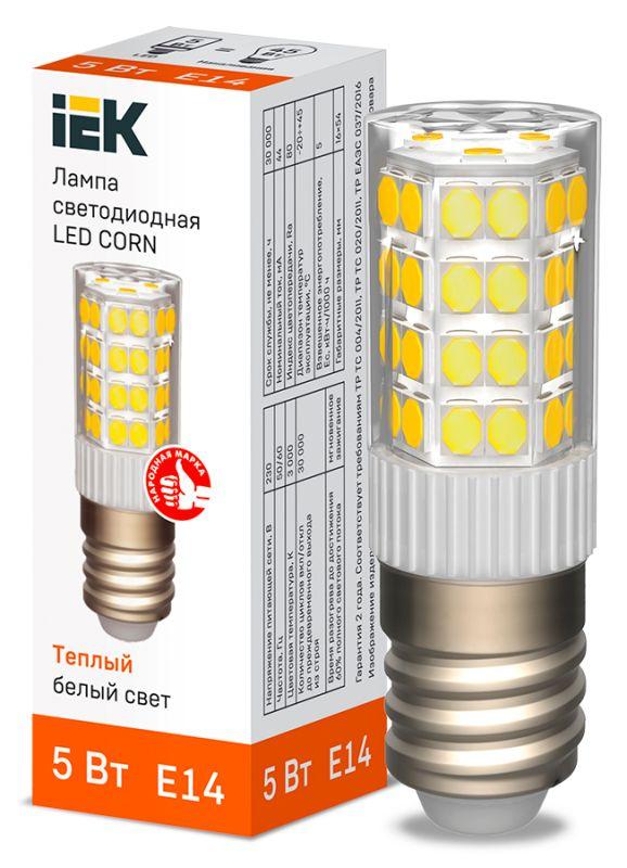 Лампа светодиодная CORN 5Вт капсула 3000К E14 230В керамика IEK LLE-CORN-5-230-30-E14