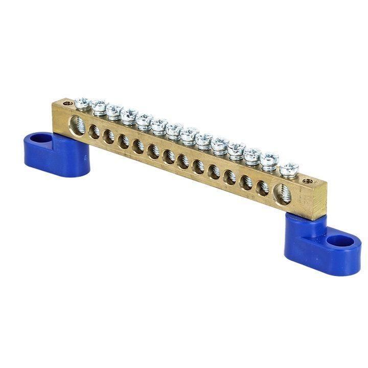 Шина нулевая N 6х9 14 отверстий 2 синих угловых изолятора латунь розн. стикер PROxima EKF sn0-63-14-2-r