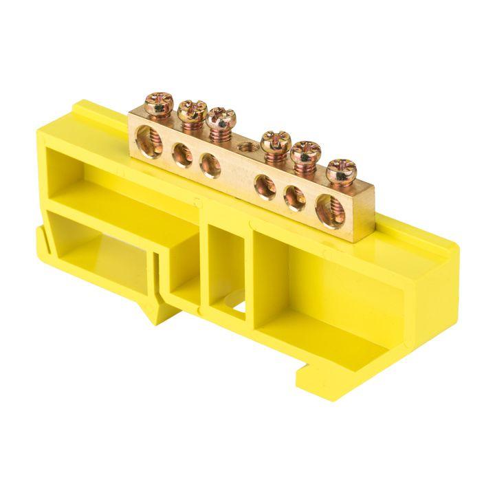Шина нулевая N 6х9 6 отверстий желтый изолятор на DIN-рейку латунь розн. стикер PROxima EKF sn0-63-06-dz-r
