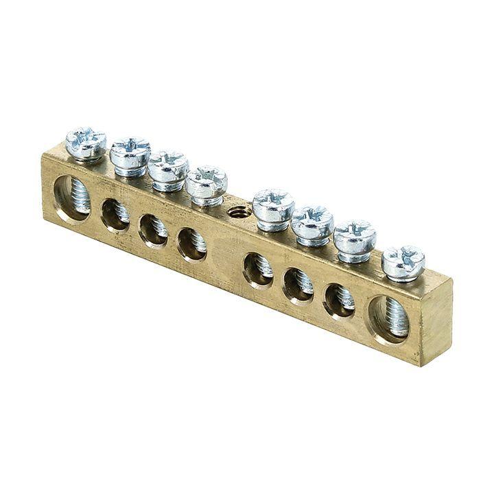 Шина PEN "ноль-земля" 6х9 8 отвер. латунь крепеж по центру розн. стикер PROxima EKF sn0-63-08-r