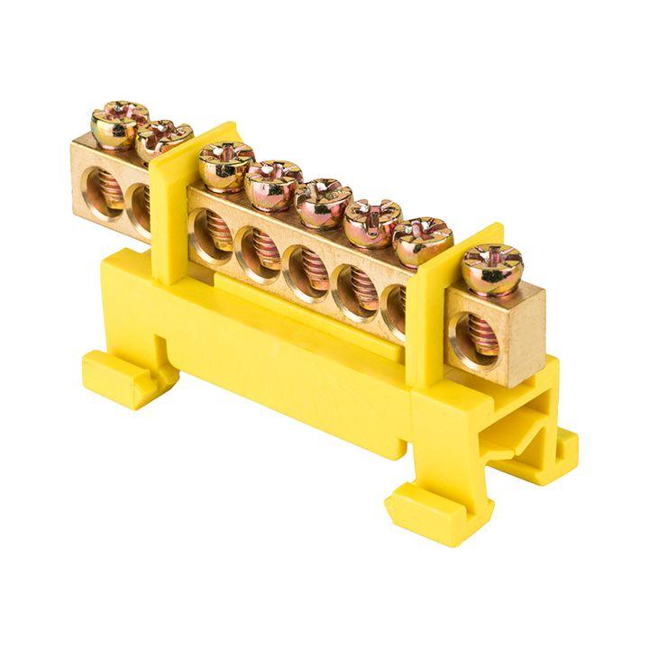 Шина нулевая PE 6х9 8 отвер. латунь желт. изолятор тип "Стойка" на DIN-рейку PROxima EKF sn0-63-8-sy