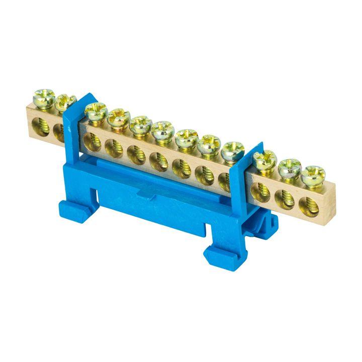 Шина нулевая N 6х9 10 отвер. латунь синий угловой изолятор EKF sn0-63-10-1