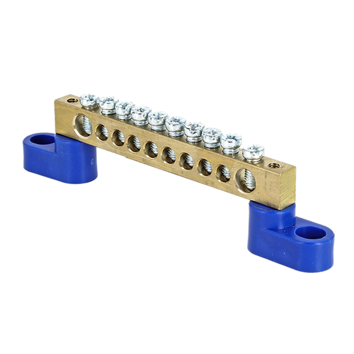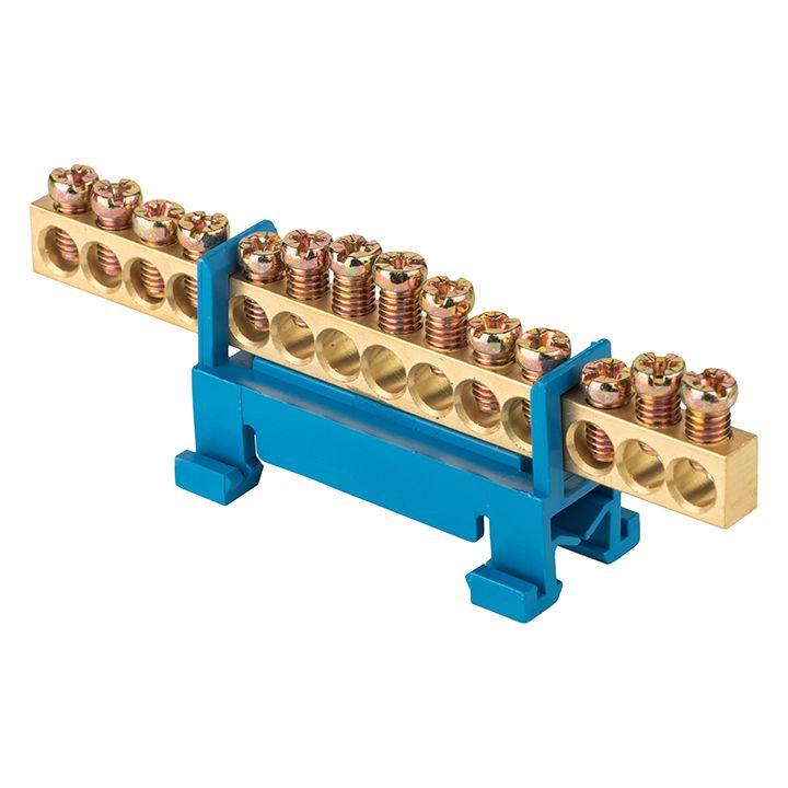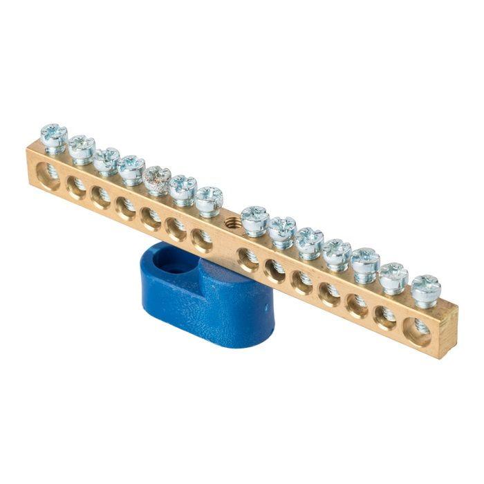Шина нулевая N 6х9 10 отверстий 2 синих угловых изолятора латунь PROxima EKF sn0-2-63-10
