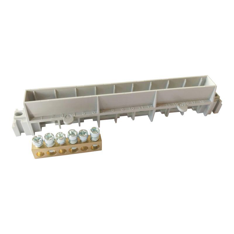 Шина нулевая N 6х9 8 отвер. латунь желт. изолятор на DIN-рейку розн. стикер PROxima EKF sn0-63-08-dz-r