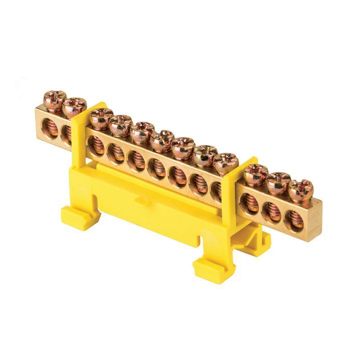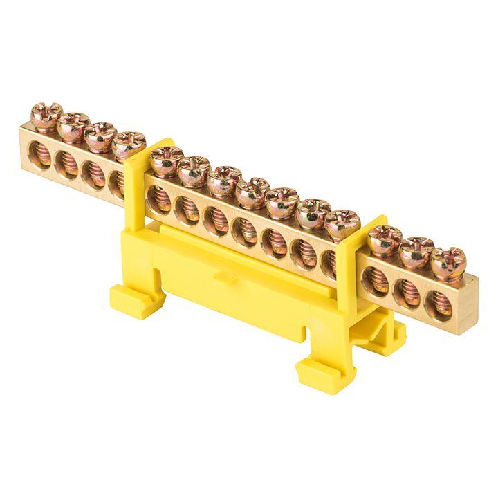 Шина нулевая PE 6х9 14 отверстий желтый изолятор тип "Стойка" на DIN-рейку латунь PROxima EKF sn0-63-14-sy