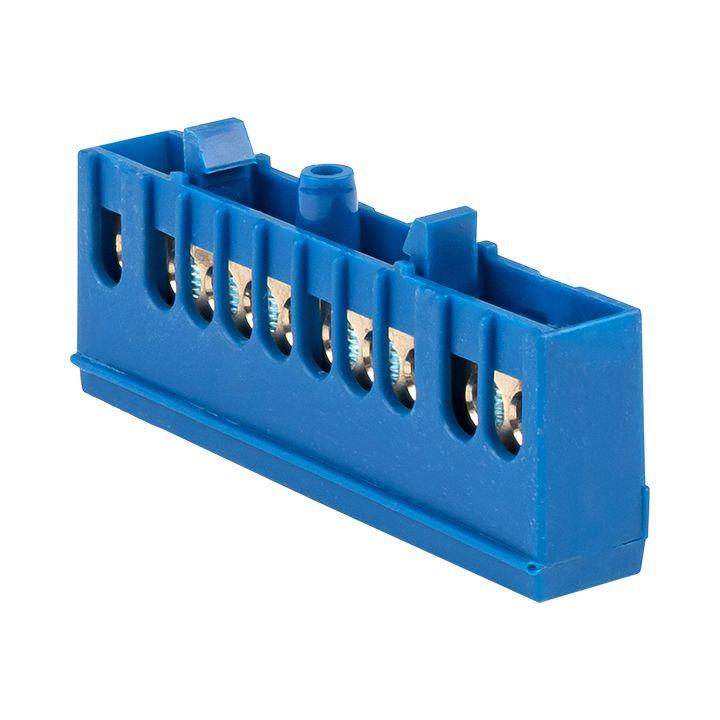 Шина нулевая N 6х9 8 отверстий синий изолированный корпус на DIN-рейку латунь PROxima EKF sn0-63-8-ib