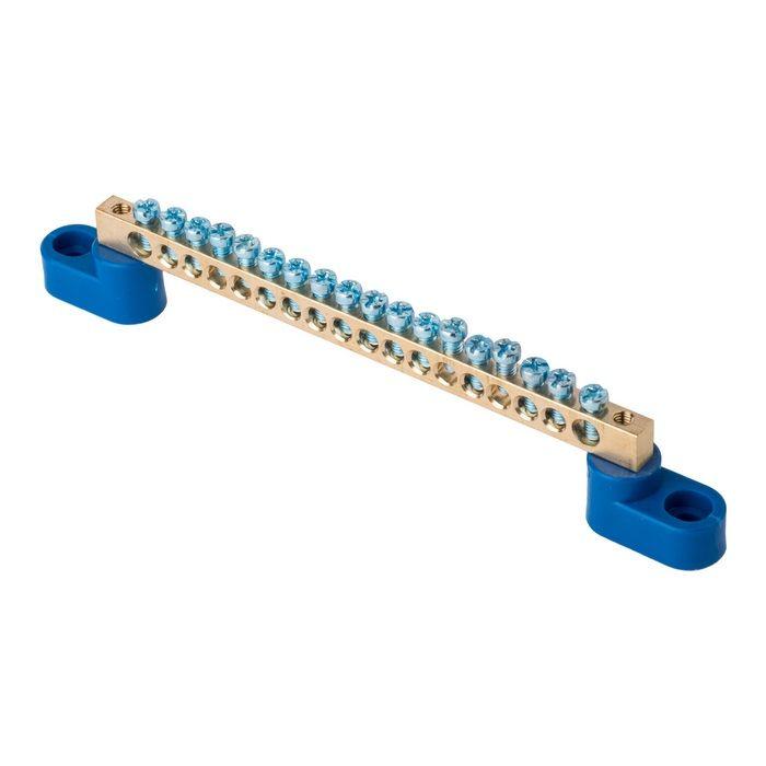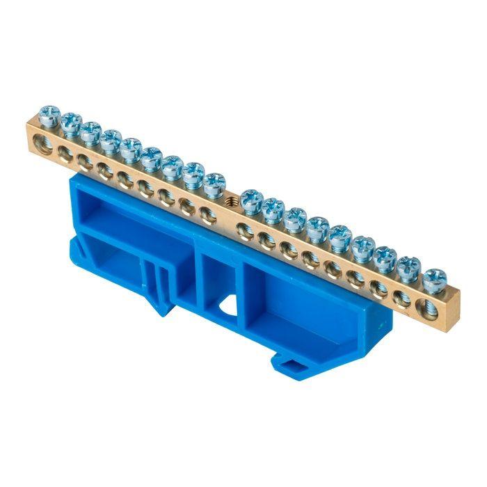 Шина нулевая N 6х9 18 отвер. латунь син. изолятор на DIN-рейку PROxima EKF sn0-63-18-d