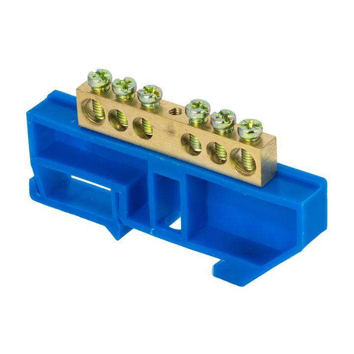 Шина нулевая N 8х12 6 отвер. латунь син. изолятор на DIN-рейку PROxima EKF sn0-125-6-d