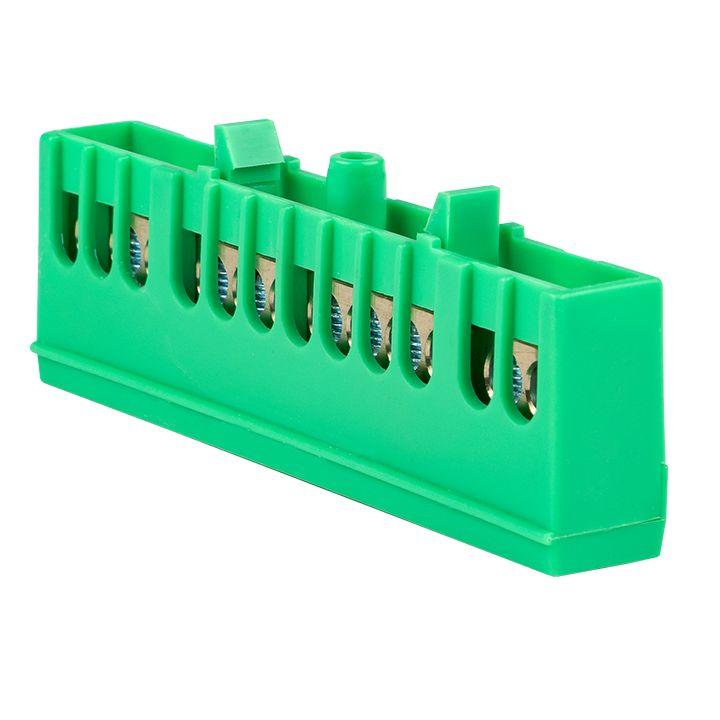 Шина нулевая PE 8х12 6 отвер. латунь с контактной пластиной 2 зел. угловых изолятора PROxima EKF sn0-125-06-2-pe