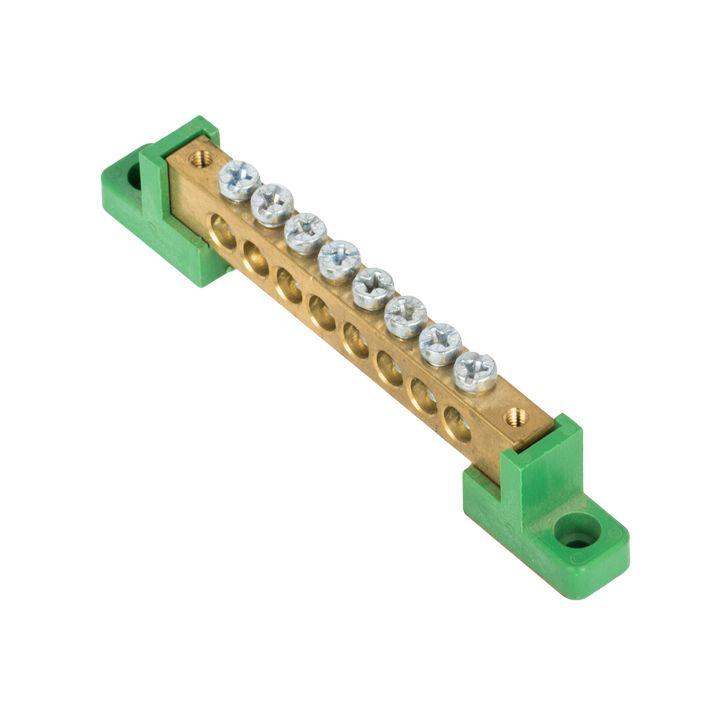 Шина нулевая PE 8х12 8 отвер. латунь с контактной пластиной 2 зел. угловых изолятора PROxima EKF sn0-125-08-2-pe