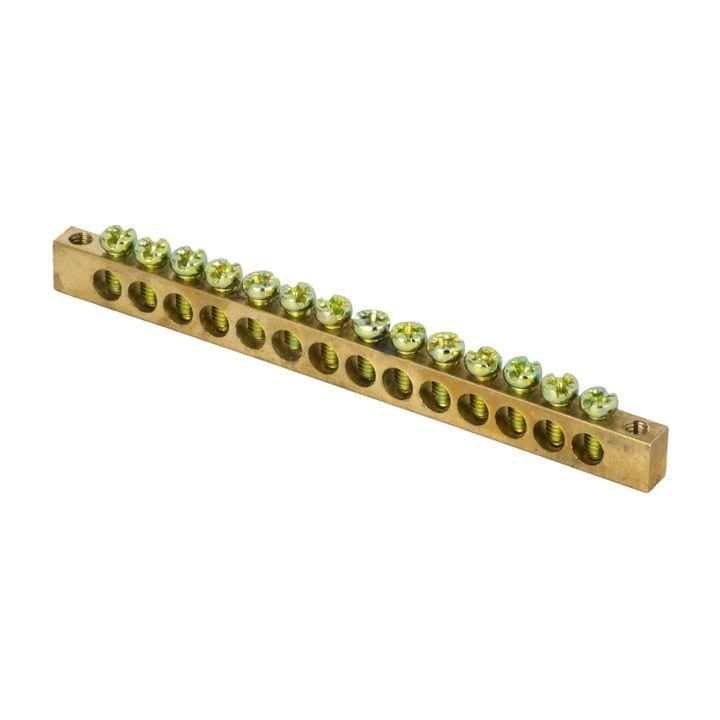 Шина нулевая N 6х9 14 отверстий желтый изолятор на DIN-рейку латунь PROxima EKF sn0-63-14-dz