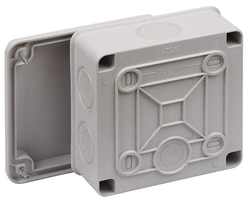 130114 | Коробка распределительная ОП 85х85х45мм IP54 с клемм. 7 выходов 3 гермоввода 10А 6 контактов крышка на винтах сер. Epplast