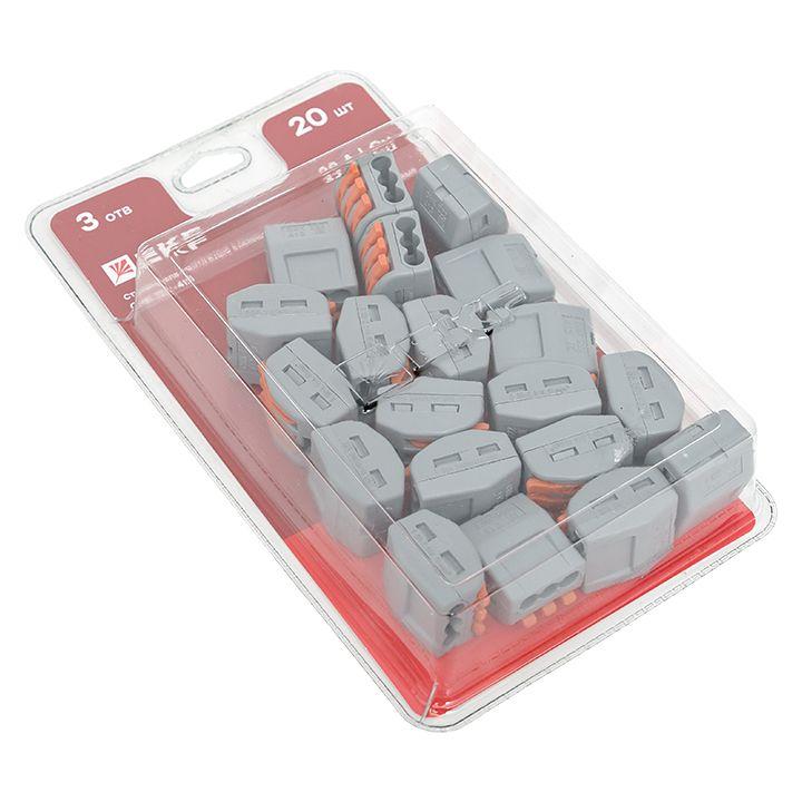 Клемма строительно-монтажная СМК 222-413 с рычагом 3 отверстия (блист.20шт) EKF PROxima plc-smk-413b-20