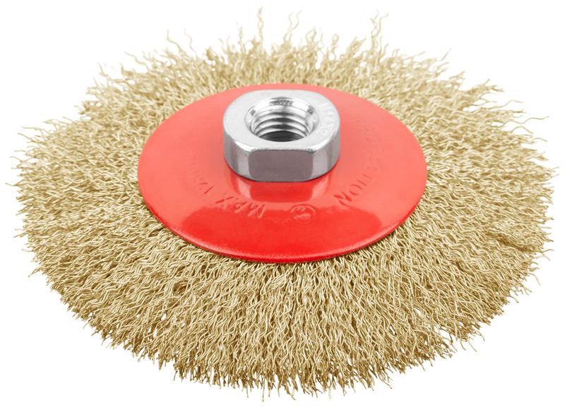Корщетка-колесо с наклоном гайка М14 стальная латунированная волнистая проволока 100мм FIT 39050