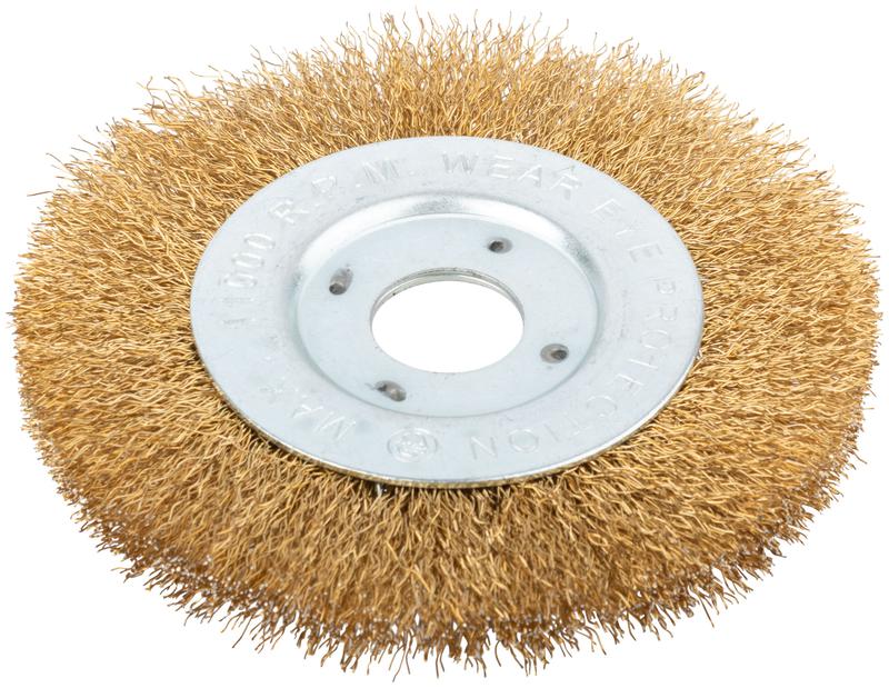 Корщетка-колесо посадочный d22.2мм стальная латунированная волнистая проволока 125мм FIT 39065