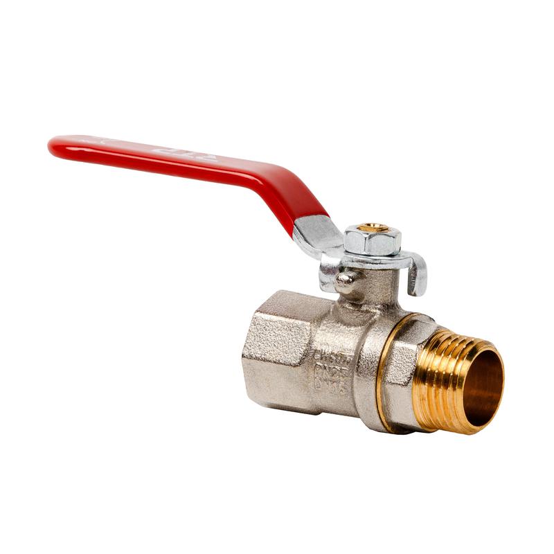 Кран шаровой ручка рычаг латунь внутр./наружн. резьба 1/2дюйм PN25 никель (инд. упак.) RTP 34886
