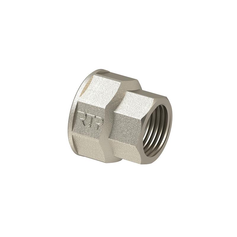 Муфта переходная латунь внутр. резьба 1/2х3/8дюйм никель (инд. упак.) RTP 34902
