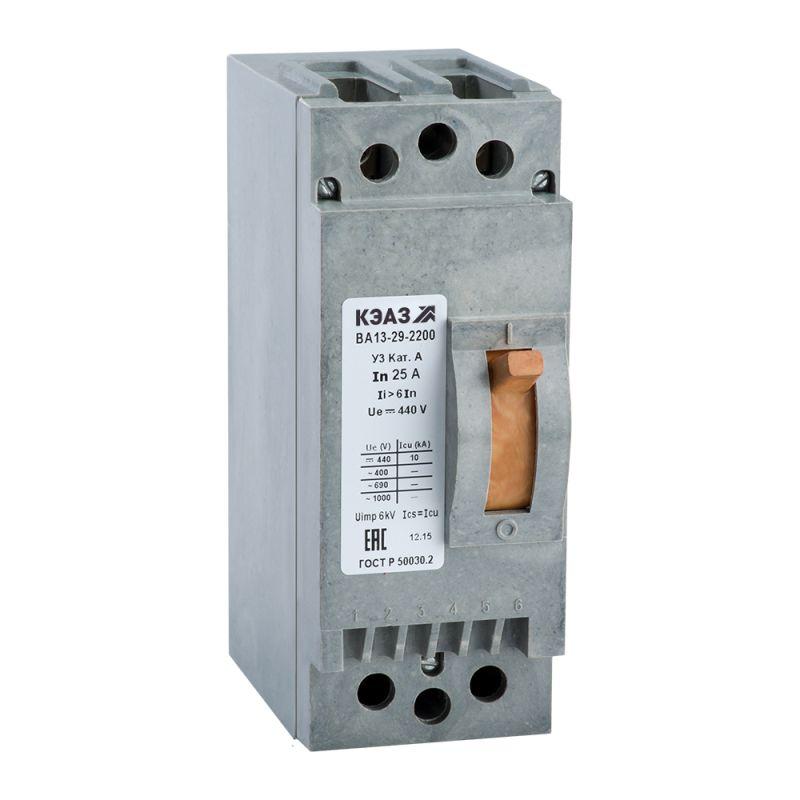 290219 | Выключатель автоматический 3п 25А 12Iн ВА21-29В-342810 У3 690В AC НР=400В AC КЭАЗ