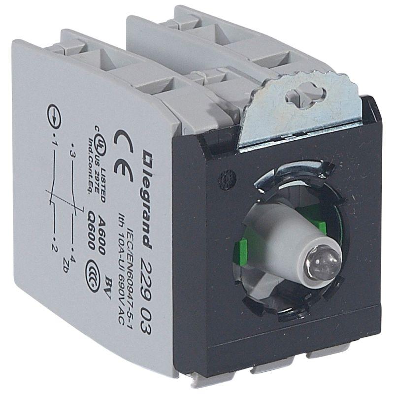 023080 | Блок контактов 230В с инд. с пруж. клеммами бел. Osmoz Leg