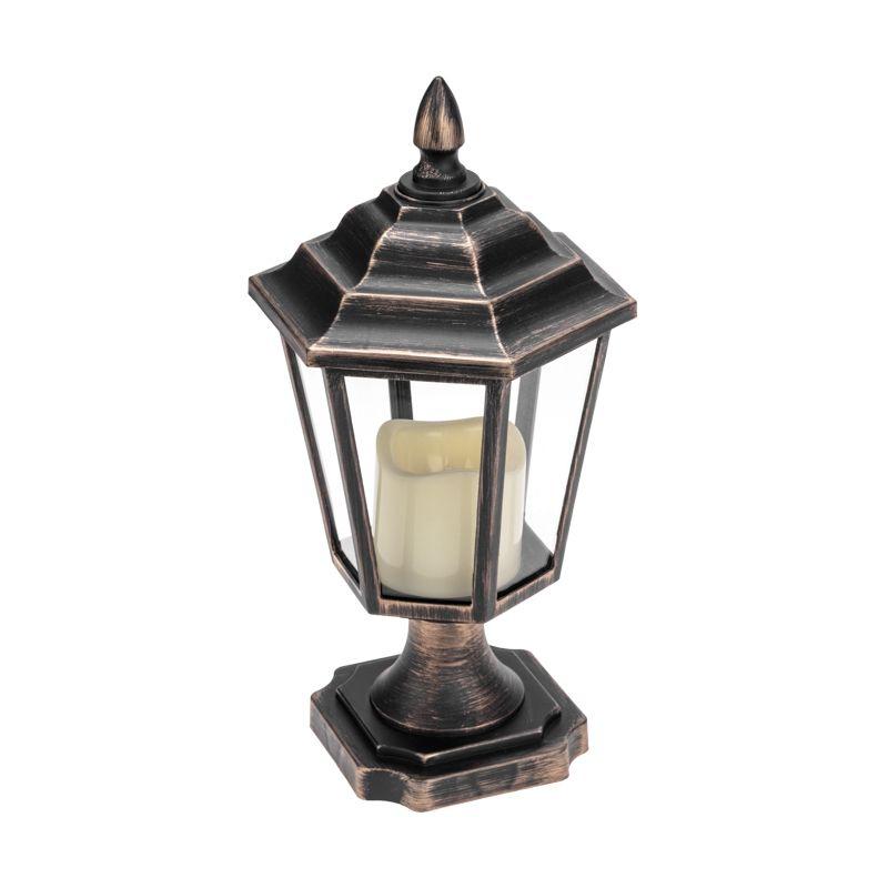 Фонарь декоративный на подставке со свечкой бронзовый корпус размер 14.5х17х31см тепл. бел. Neon-Night 513-058