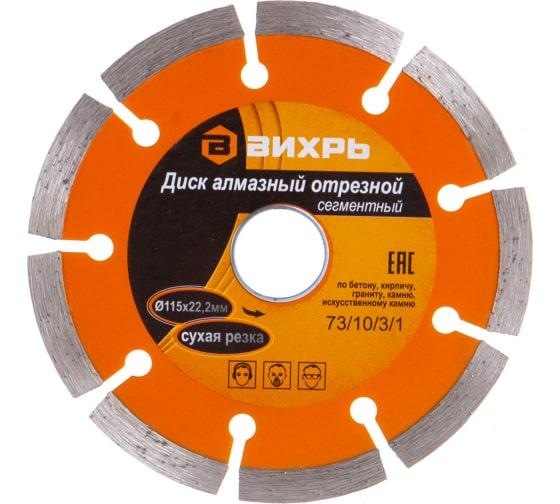 Диск отрезной алмазный сегментный 115х22.2мм сухая резка Вихрь 73/10/3/1