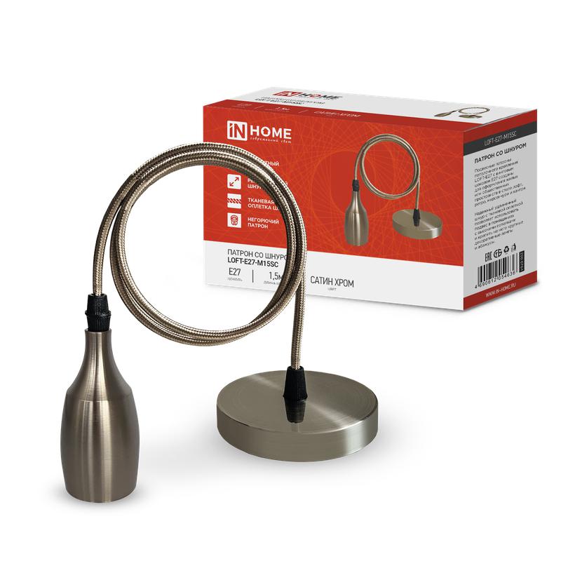 Патрон LOFT-Е27-M15SC со шнуром 1.5м сатин хром IN HOME 4690612054636