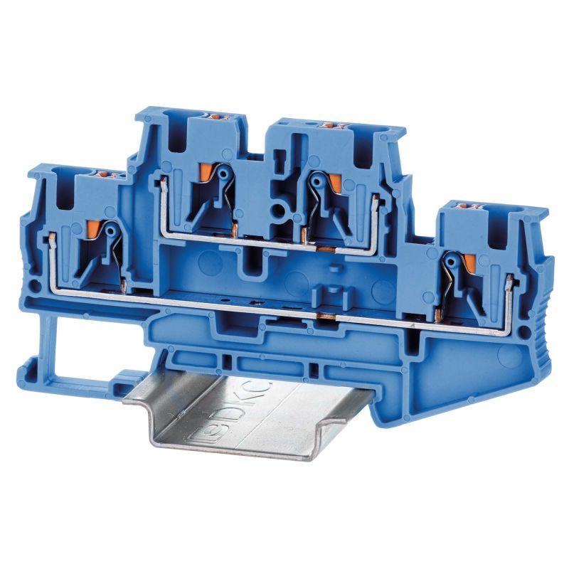 VPRTT-4-BU | Клемма двухуровневая зажим push-in 4 точки подключения 4кв.мм син. DKC