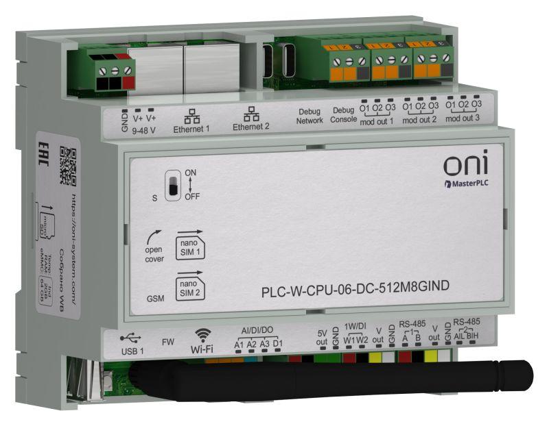 Контроллер программируемый логический CPU 6 IO 512MB RAM 8GB ROM 24 В DC пром. исп. ПЛК W. ONI PLC-W-CPU-06-DC-512M8GIND