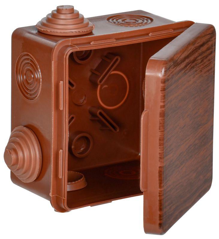 Коробка распаячная ОП 80х80х50мм с гермовводами темн. дерево Урал Пак КО-92018080-032