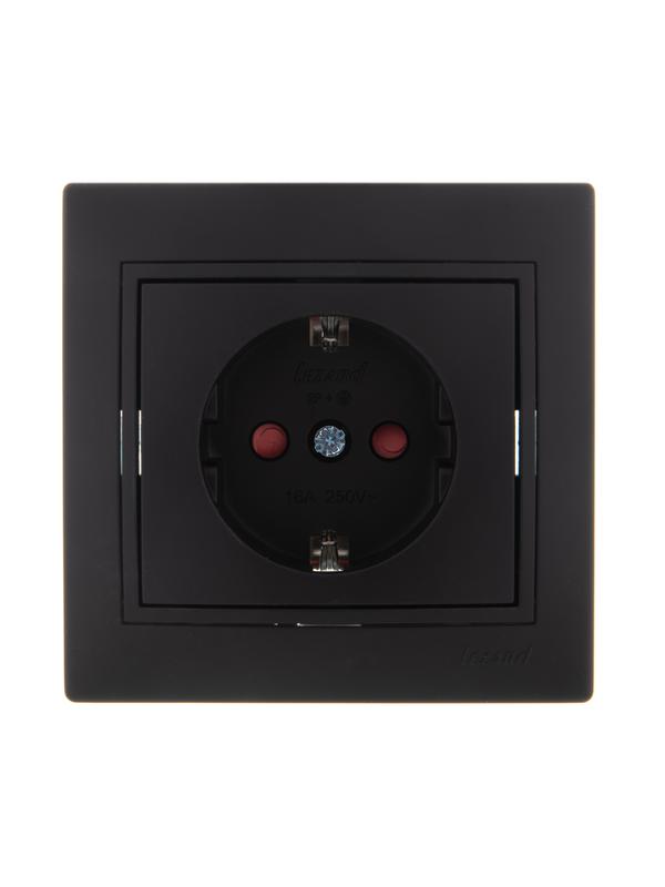 Розетка 1-м СП Mira с заземл. с защ. крышкой керамика черн. бархат LEZARD 701-4242-123