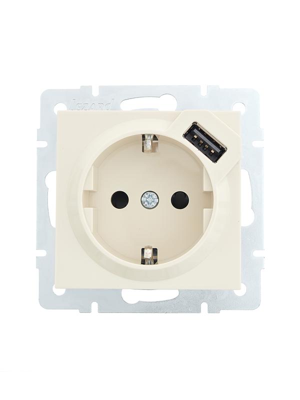 Розетка 1-м СП Vesna с заземл. с заряд. устройством USB механизм крем. LEZARD 742-0388-181