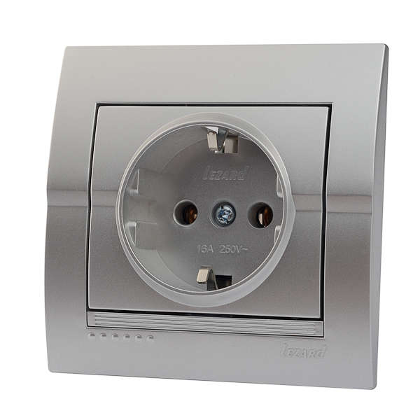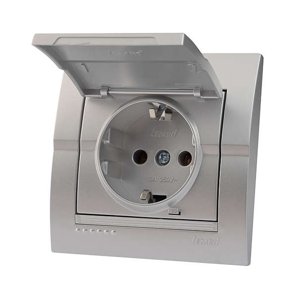 Розетка 1-м СП Deriy с заземл. с защ. крышкой керамика серебр. метал. LEZARD 702-2828-123