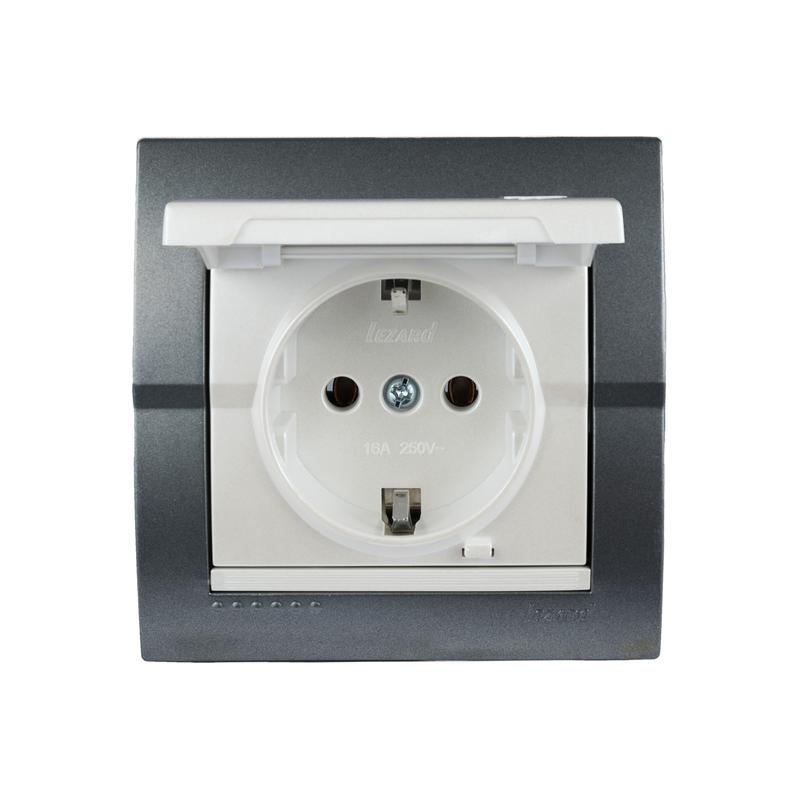 Розетка 1-м ОП Demet с заземл. с защ. крышкой маун LEZARD 711-0400-123
