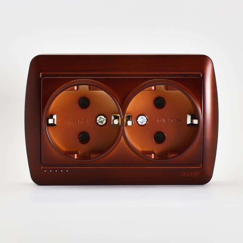 Розетка 2-м ОП Demet с заземл. закрыт. корпус махагон LEZARD 711-0500-127