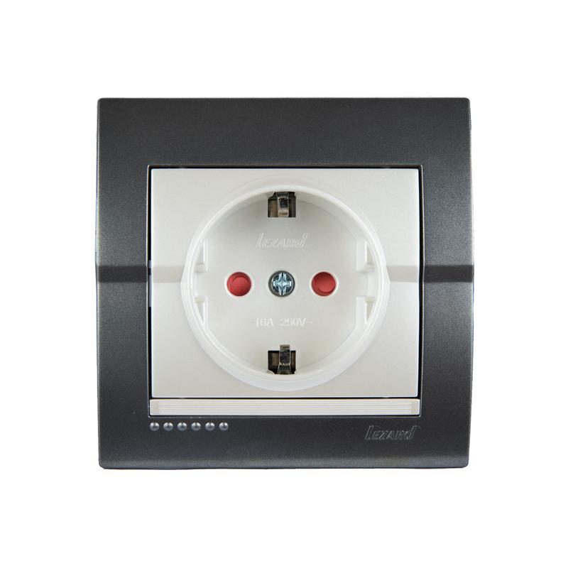 Розетка 1-м СП Deriy с заземл. защ. шторки термопласт темн. сер./жемчуж. LEZARD 702-2930-124B