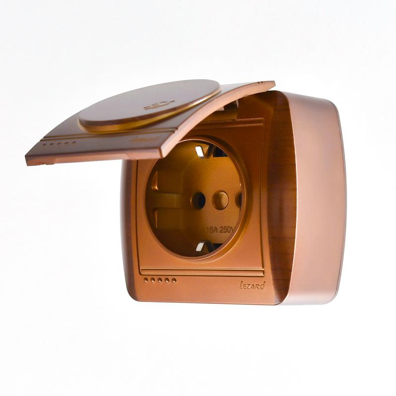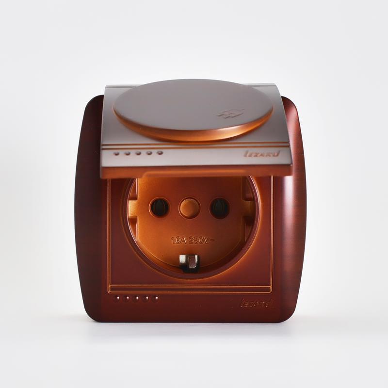Розетка 1-м ОП Demet с заземл. с защ. крышкой махагон LEZARD 711-0500-123