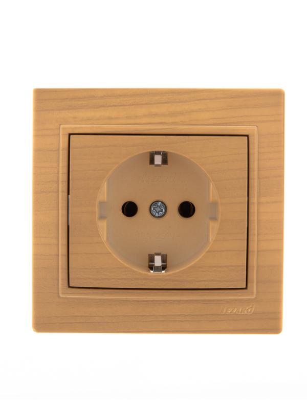 Розетка 1-м ОП Demet с заземл. с защ. крышкой ясень LEZARD 711-4700-123