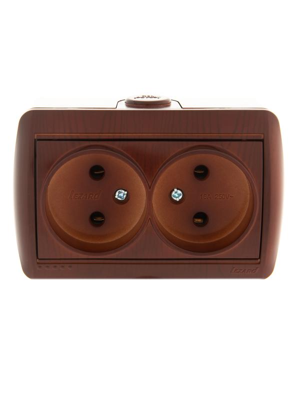 Розетка 2-м ОП Nata 16А IP20 без заземл. керамика ольха LEZARD 710-0700-128