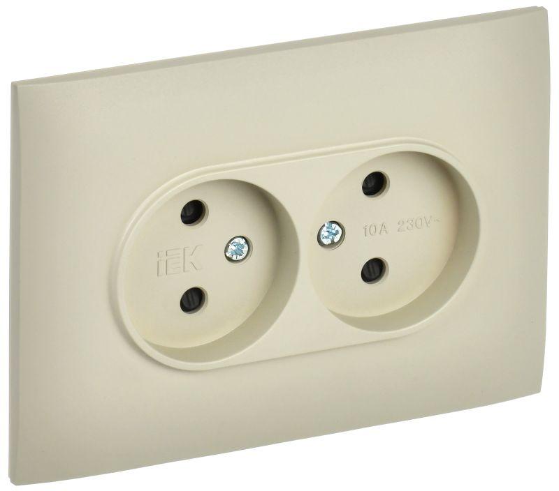 SK-R23-10-K10-F | Розетка 2-м SKANDY 10А без заземл. защ. штроки в сборе SK-R09B беж. IEK