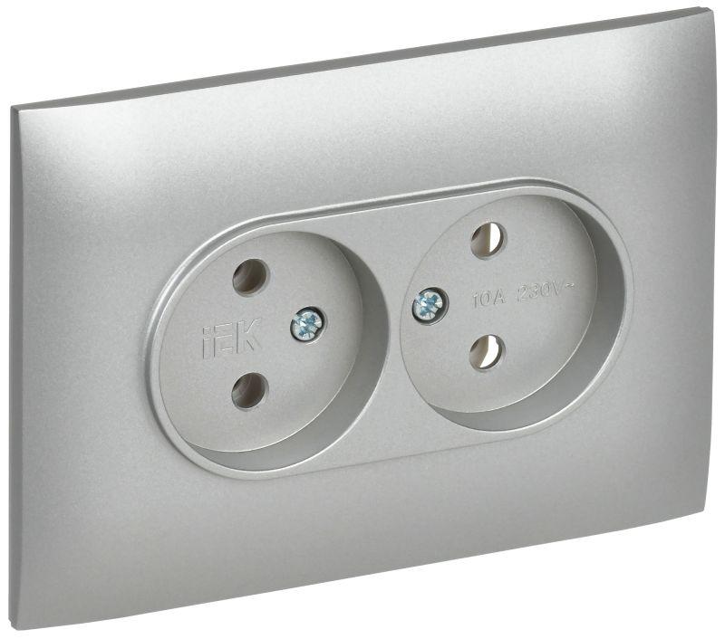 SK-R20-10-K48-F | Розетка 2-м SKANDY 10А без заземл. без защ. шторок в сборе SK-R10T титан IEK
