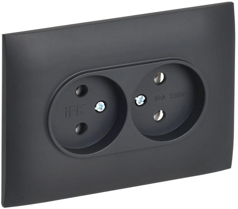 Розетка 4-м ОП GLORY РС24-2-ХЧм 10А без заземл. без защ. шторок черн. матов. IEK ERH40-K02M-10