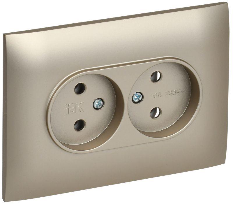 Розетка 4-м ОП GLORY РС24-2-ХШм 10А без заземл. без защ. шторок шампань матов. IEK ERH40-K37M-10